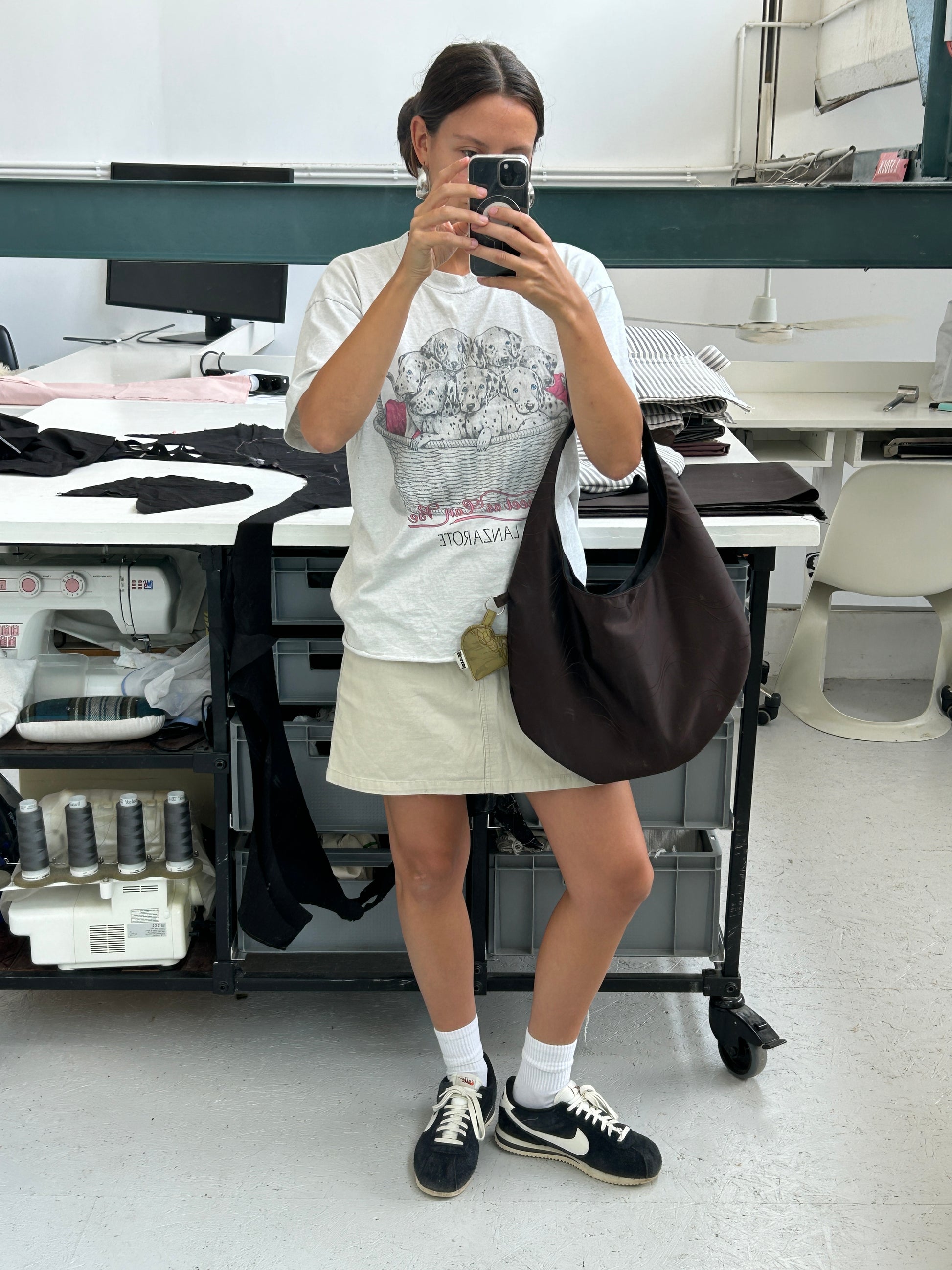 Our brown wavy medium EGG is the perfect shoulder bag for your on-the-go lifestyle. With enough space to carry your personal belongings like your sweater, camera, bottle and more, it’s ideal for your daily adventures.