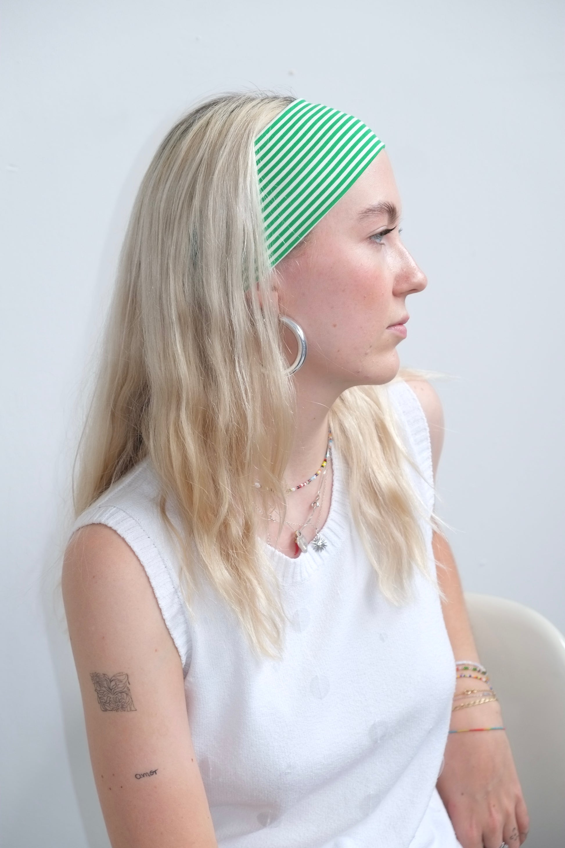 The green white striped headband is made with a soft, double-layered fabric of jersey , providing extra comfort for everyday wear. Whether you're enjoying the summer weather or adding a stylish touch to your outfit, the headband is perfect for all occasions.