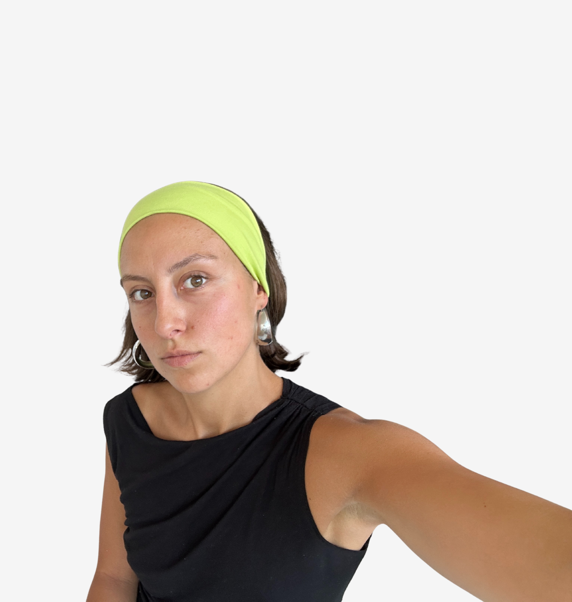 The lime green headband is made with a soft, double-layered fabric of recycled cotton and jersey, providing extra comfort for everyday wear. Whether you're enjoying the summer weather or adding a stylish touch to your outfit, this headband is perfect for all occasions