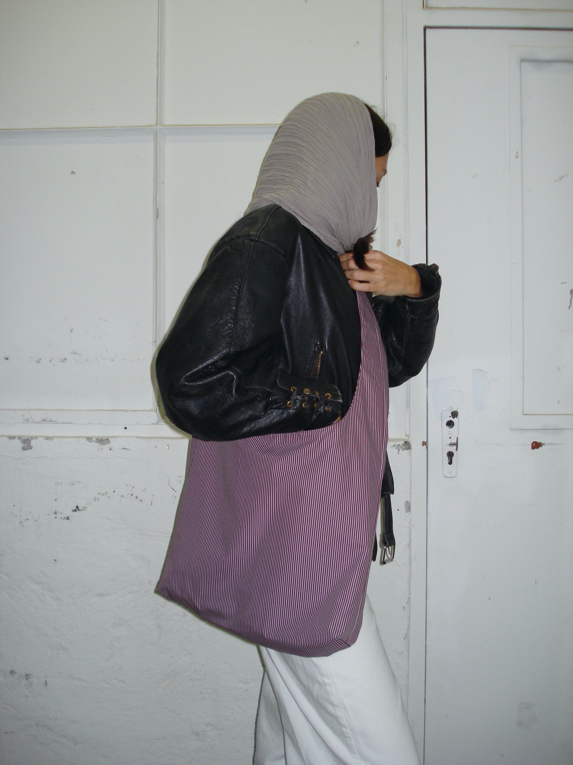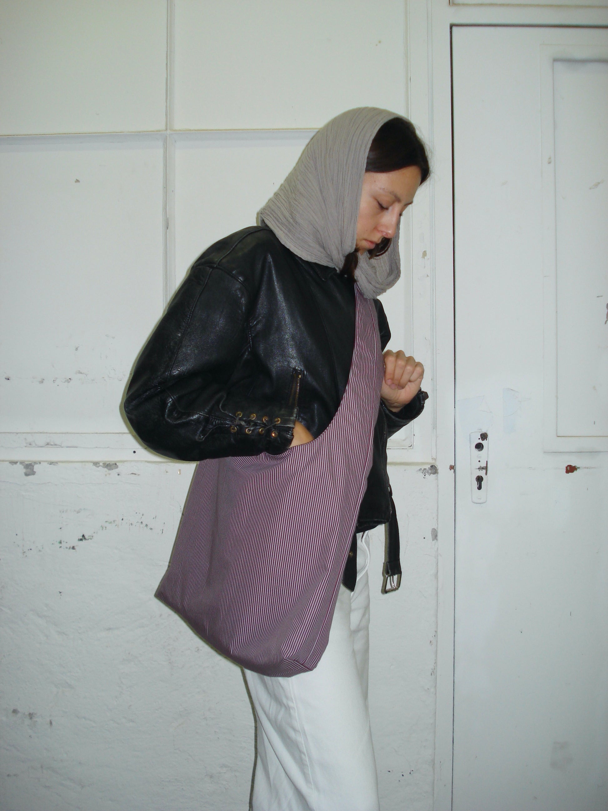 The red striped BIG crossbody bag is made out of leftover fabric and spacious enough to fit your daily life essentials. Its perfect for carrying your laptop, books, and more. It features a magnetic closure as well as an inside pocket to store your little things.