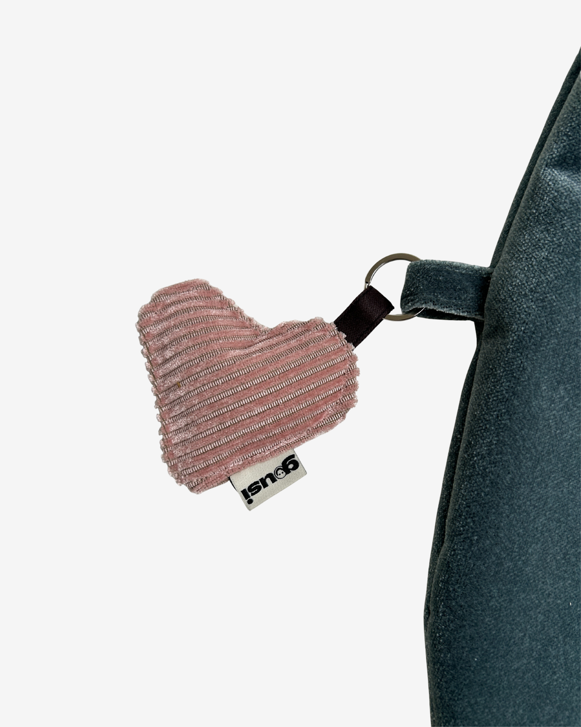 Inside, you'll find a pocket for your phone, keys and cards, keeping your essentials organized. The bag closes securely with a magnetic closure and the heart shaped keychain adds a unique touch and can be easily swapped out for a personal look.